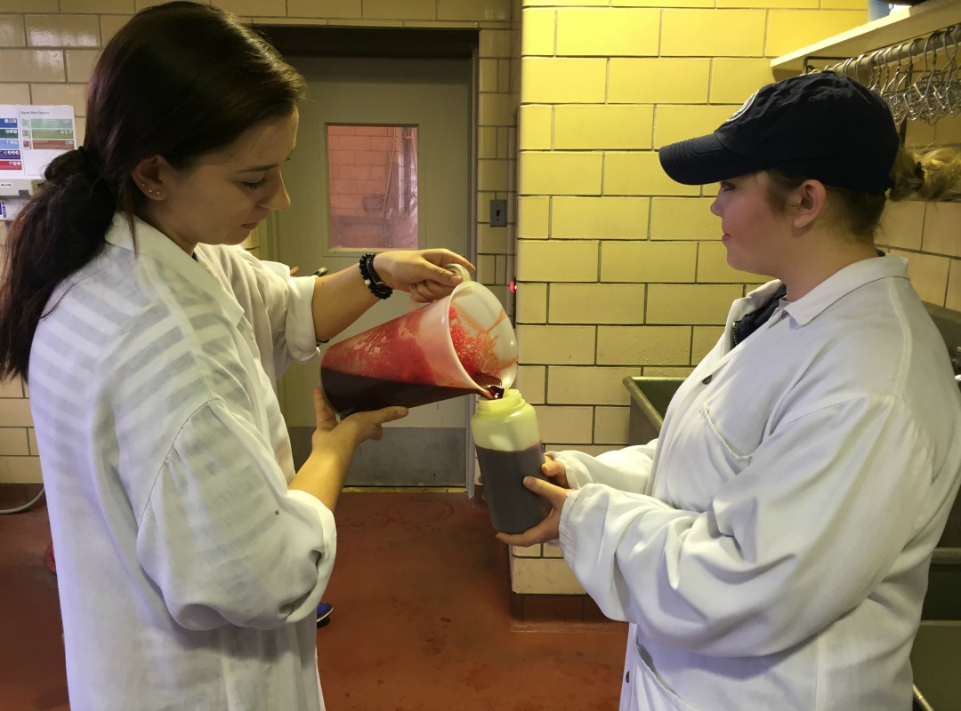 The meat lab, a USDA-inspected meat processing facility, collects the blood in 5-gallon buckets that already have the anticoagulant in them, she said. The students pour the blood into pitchers, and then into bottles for the zoo.
