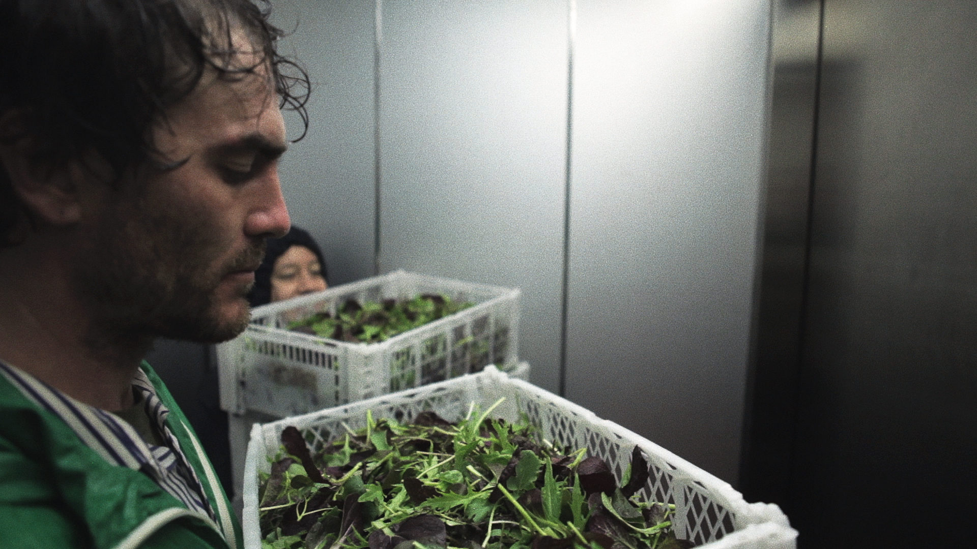 In Tyburski’s film, we see urban farmers take elevators to the fields, just as traditional farmers drive pickups to theirs. It’s the difference between stairwells and country roads.