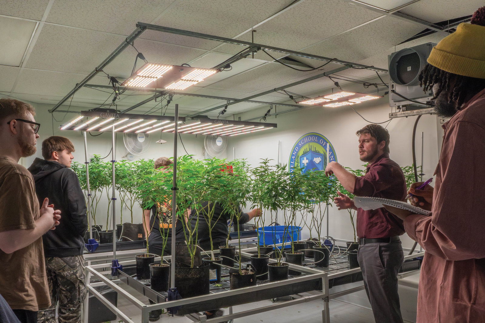 Randall Jenkins (second from right) teaches students about cannabis cultivation at the Cleveland School of Cannabis on April 5, 2024. (Liz Partsch photo)
