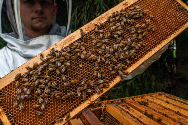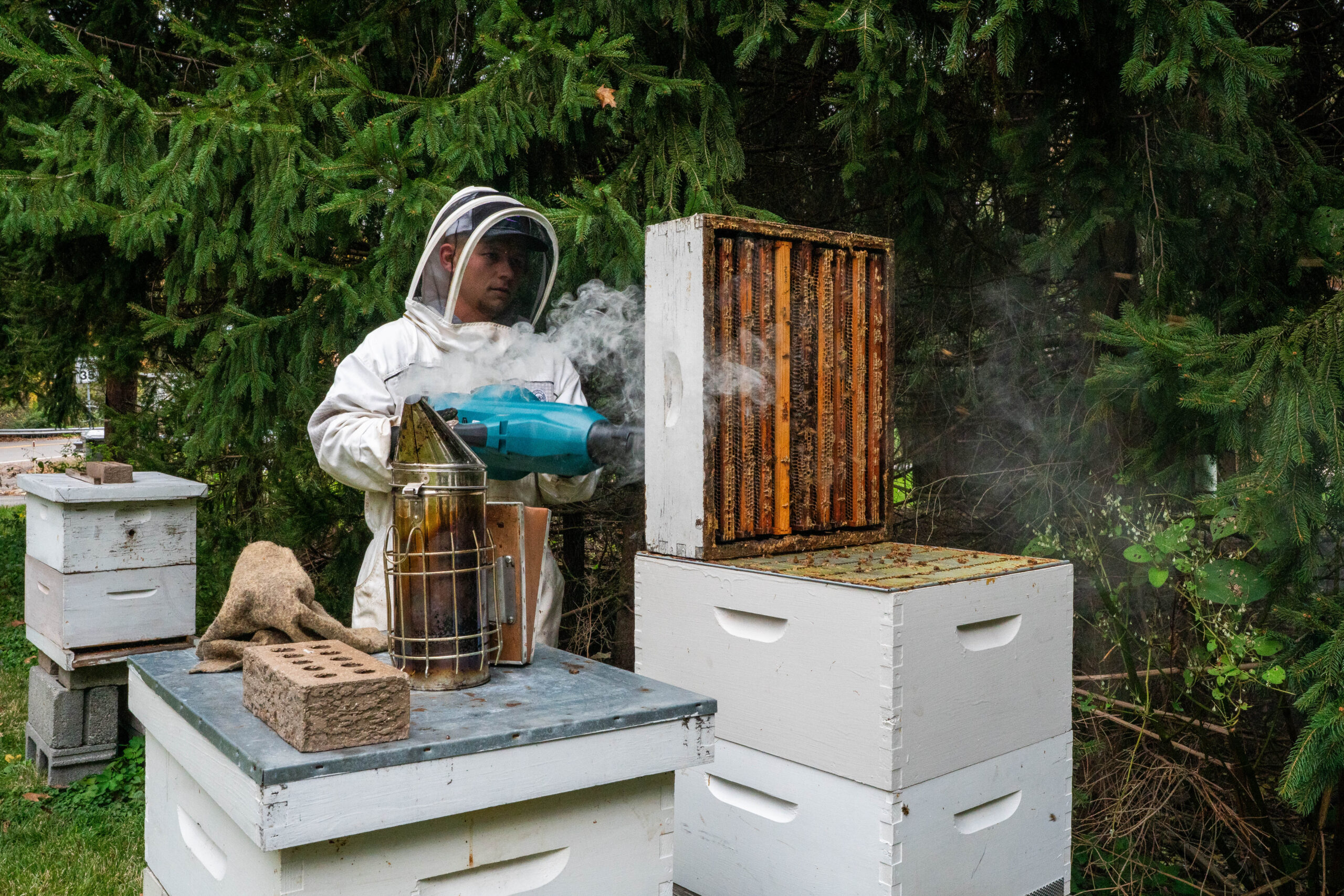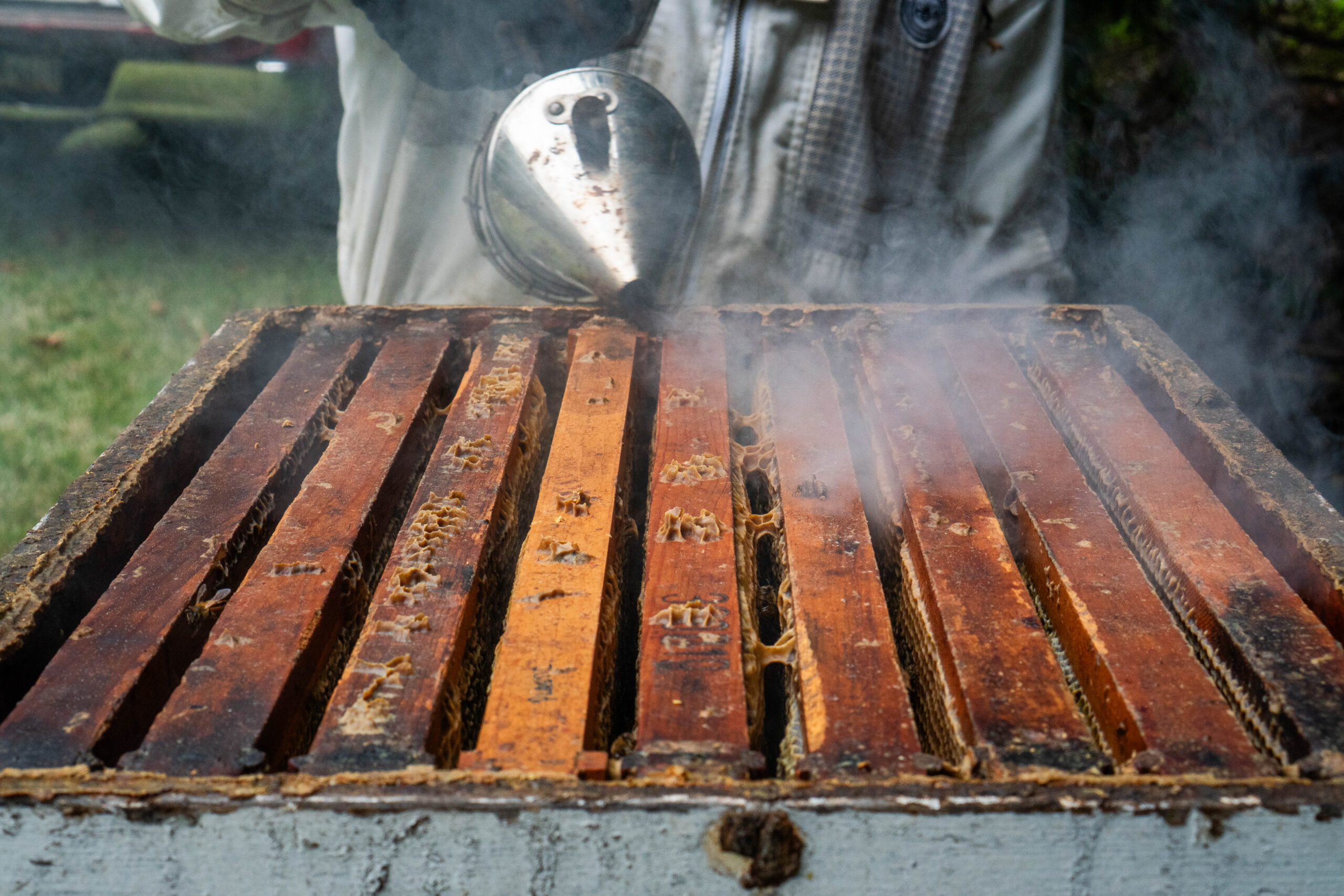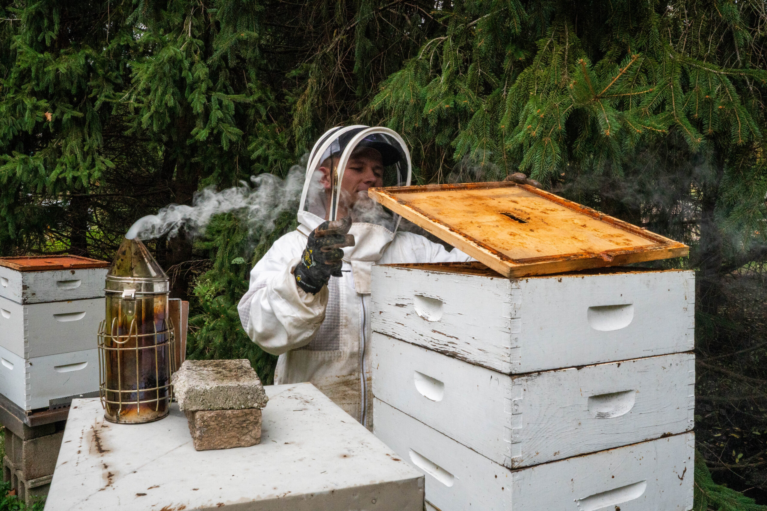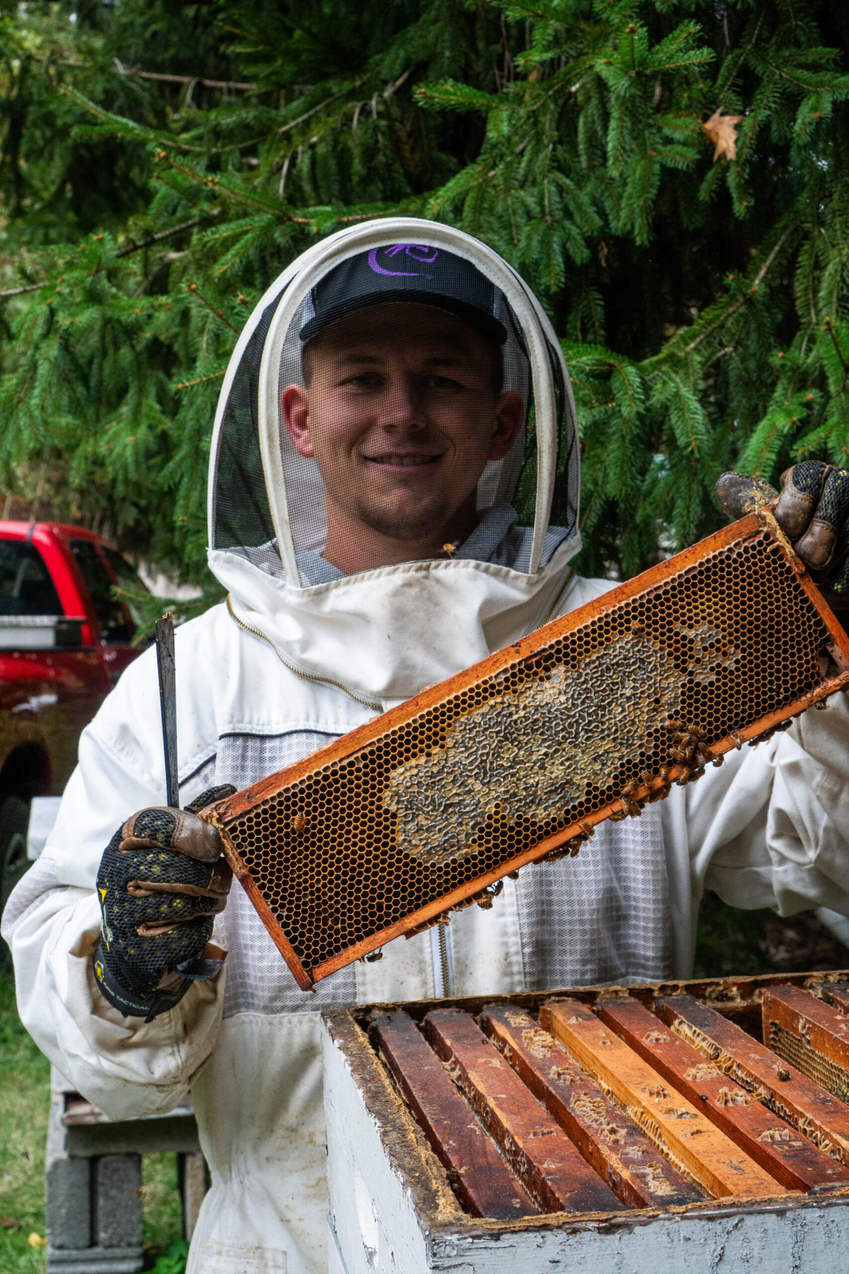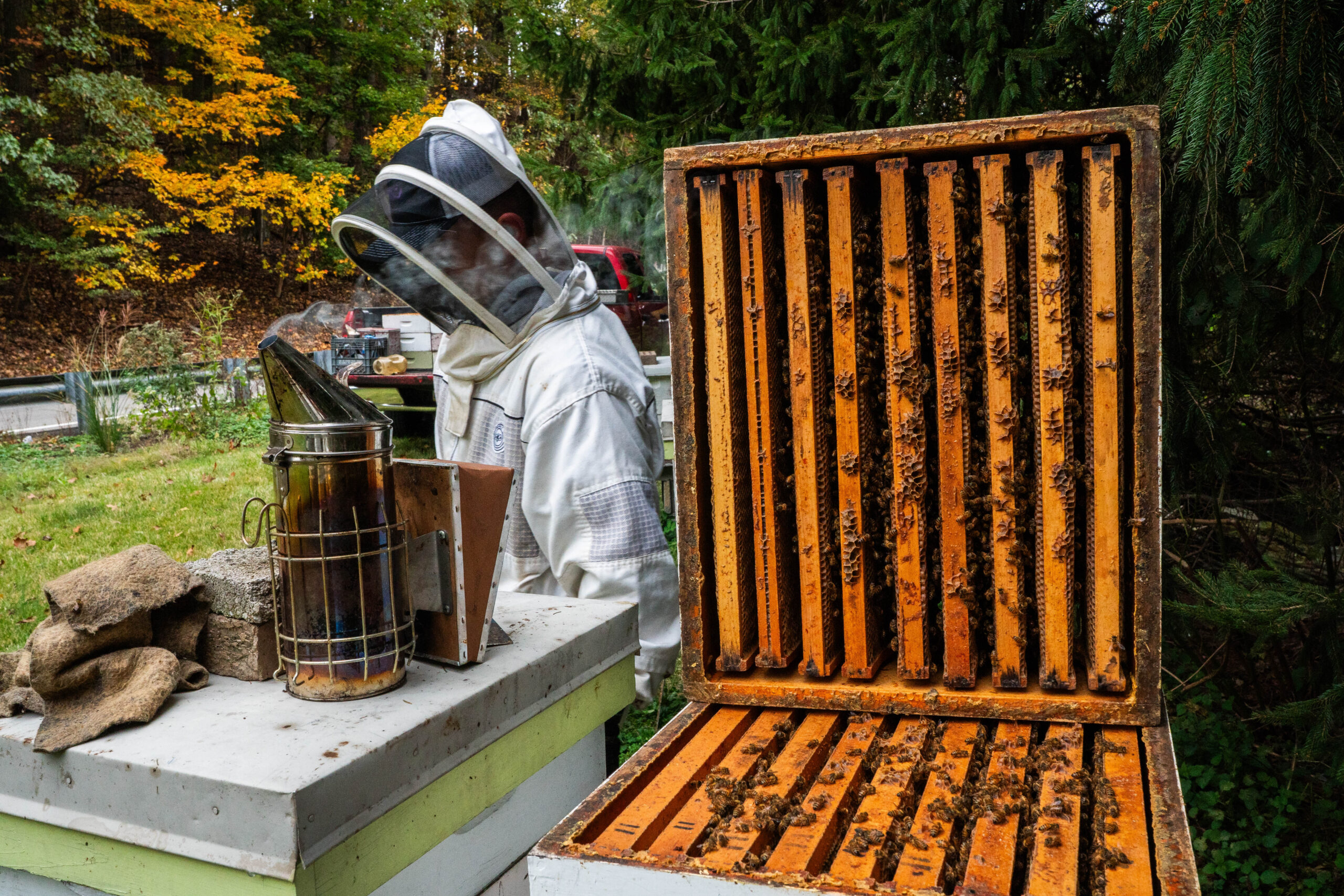 Today, he takes care of and harvests honey from 50 hives from Gibosnia to Blawnox, using the money from his honey sales to pay for his tuition at Chatham University.