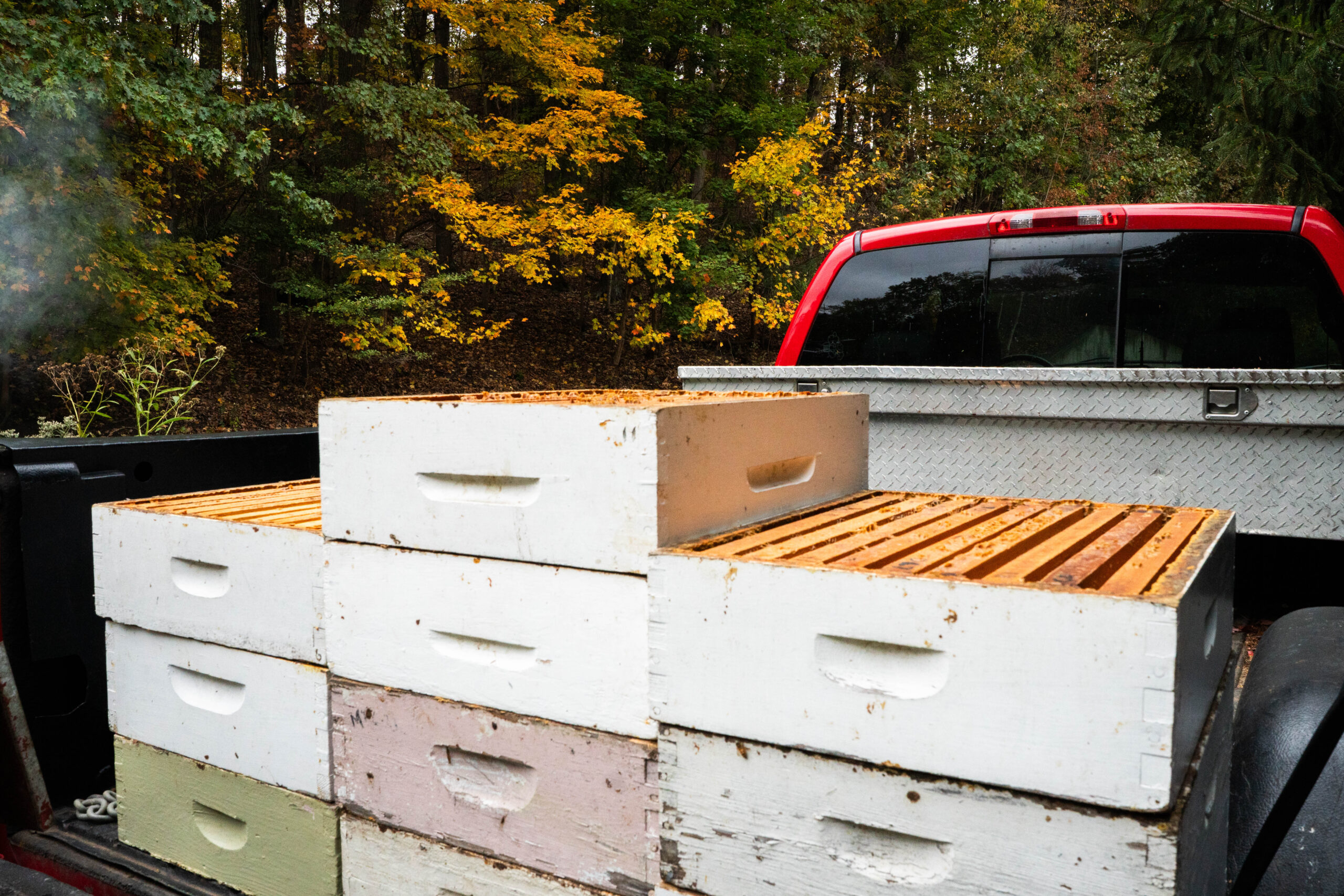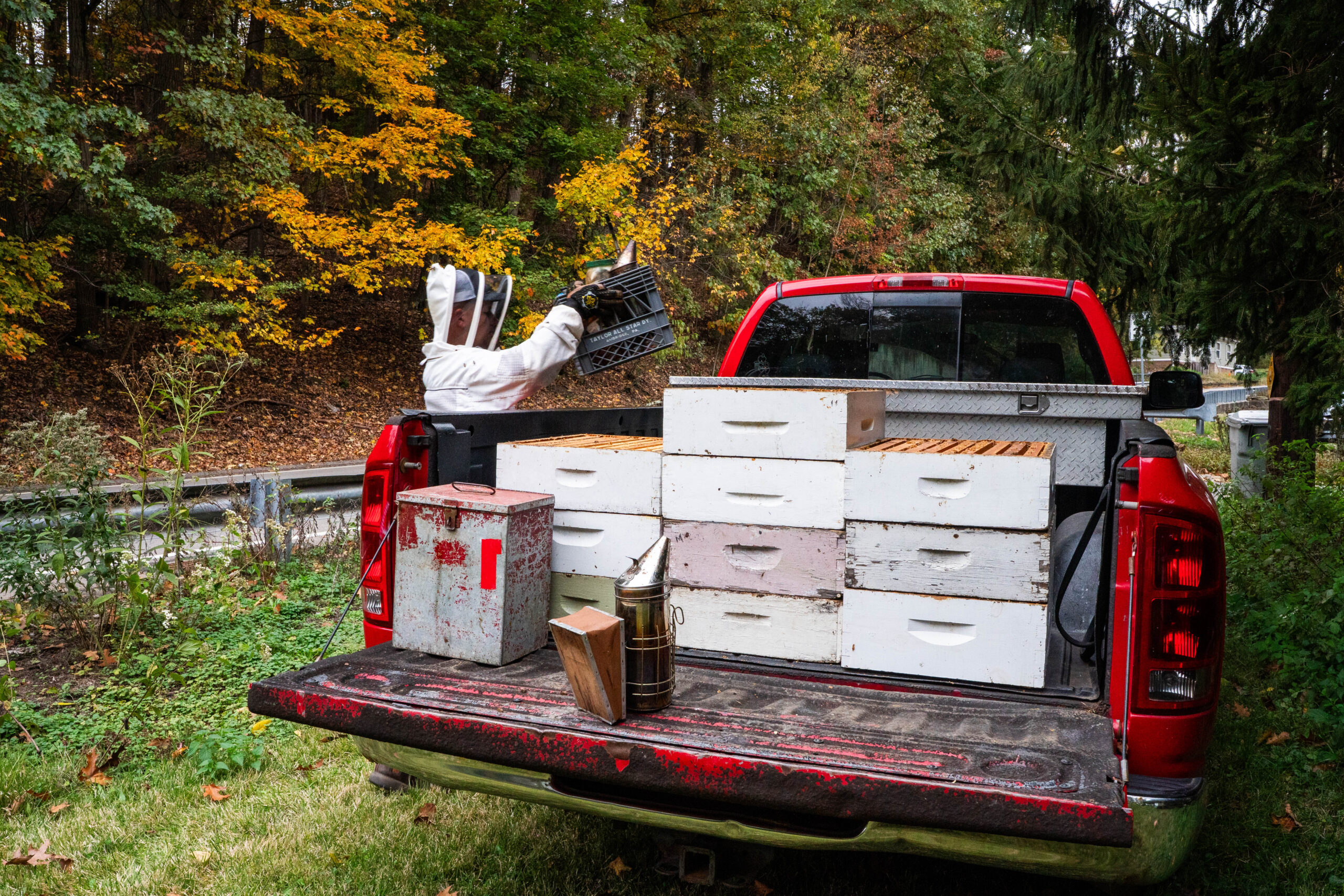 GIBSONIA, Pa. — On a crisp, fall afternoon, beekeeper Anthony Ondo loads white bee boxes into the bed of his bright red pickup truck in Pittsburgh, Pennsylvania. Later, he will extract honey from these bee boxes, a routine he has fallen into as the last days of fall round the corner.