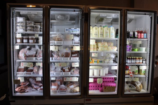 The all-local butcher and grocer sells fresh-cut meats, eggs, milk, cheese and seasonally-available produce.