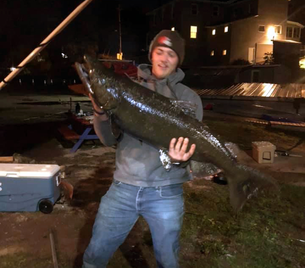 Cody Naftzger caught a 23-pound, 41-inch salmon in New York out of Lake Ontario on Oct. 3, 2020.