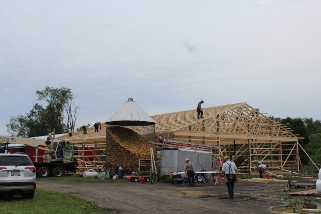 Work started on the new barn around 8 a.m. July 20, after a rain storm soaked the area. The roof trusses were up by around 11 a.m. The project was finished by about 3:30 p.m., with just a few loose ends to tie up, Frank Taylor said.