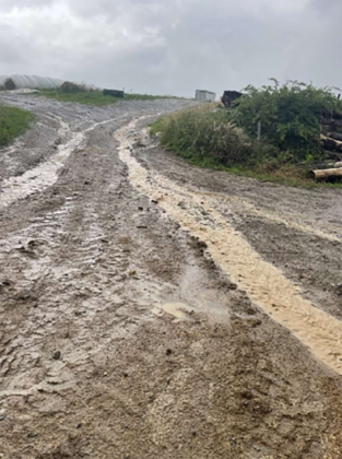 Their silage bags were stored in one of the few flat areas on their farm that just happened to be across the township road from their barn.
