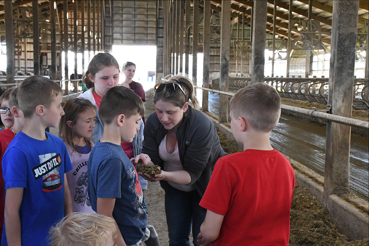 Students learned about dairy cows — including about silage and that cows have four stomachs — as they walked through the barn where dairy cows are housed.