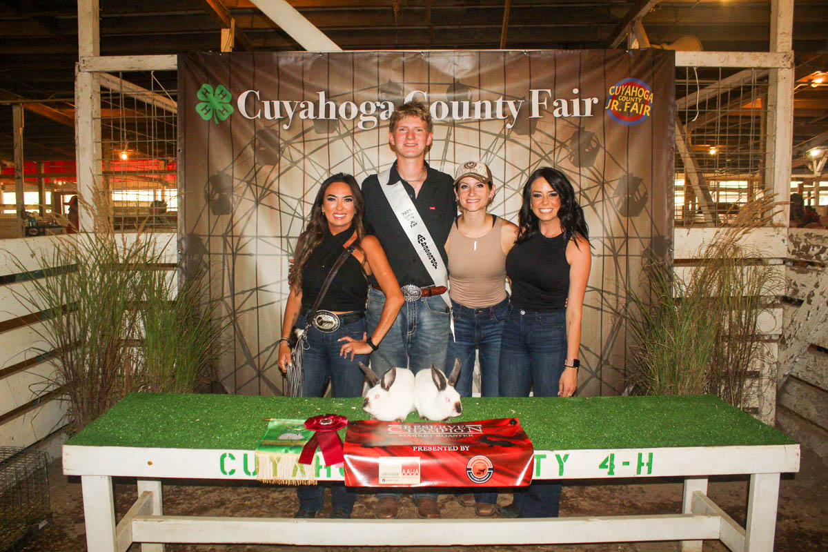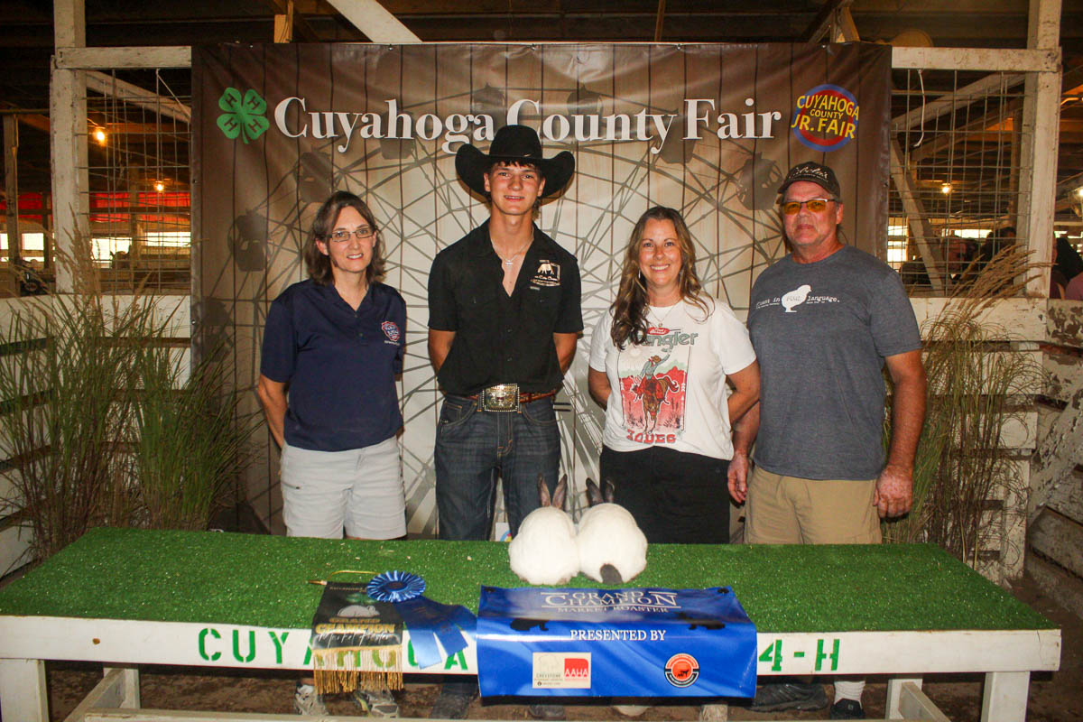 GRAND CHAMPION: Sodapop Kiser | Bid: $700 | Weight: 13.2 lbs | Buyer: Preston Family Farms & Cuyahoga County Farm Bureau; RESERVE CHAMPION: Cooper Kiser | Bid: $489 | Weight: 12.8 lbs | Buyer: Greystone Veterinarian Hospital + Urgent Care, Dr. Lindsay Kostal