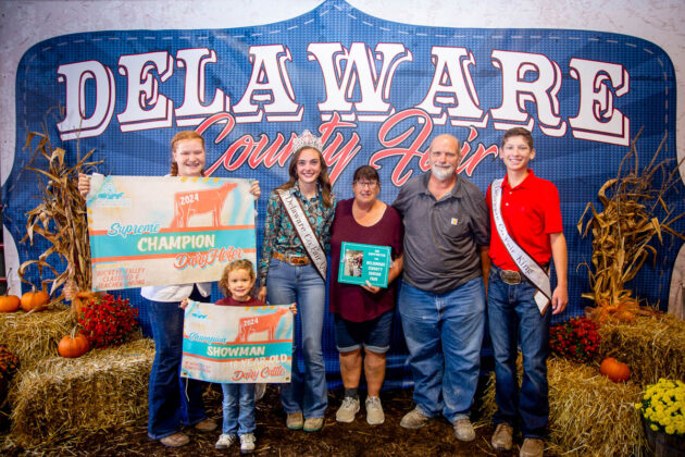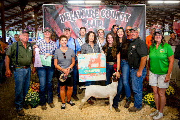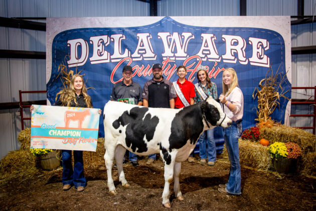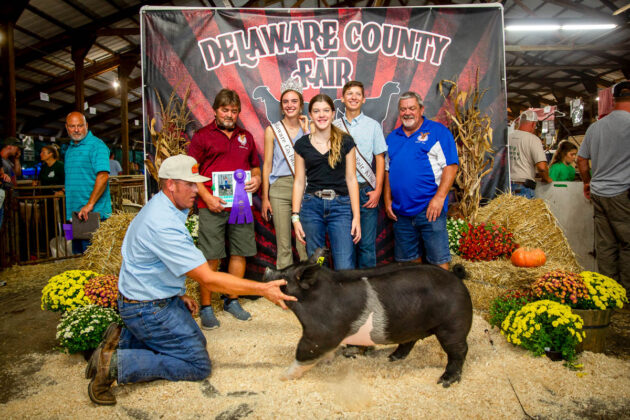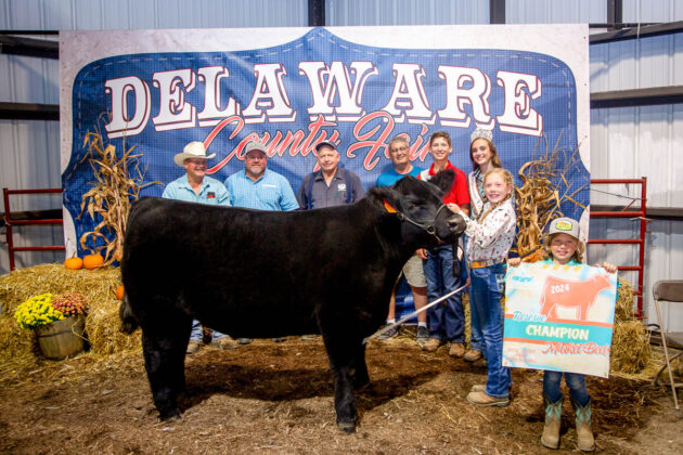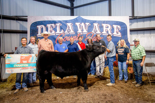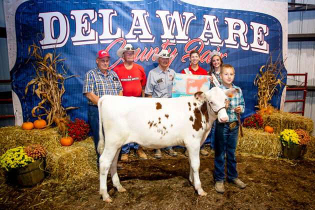 GRAND CHAMPION: Joseph McMillen | Bid: $8,989.76 | Weight: 1,368 lbs | Buyer: American Family Insurance, Cam Custom Carpentry LLC, Delaware County Farm Bureau, Ironsite Inc., Forman Realtors, Fox Swim Solutions, MadMax Farms and Altizer Family; RESERVE CHAMPION: Paisley McIntire | Bid: $5,571.56 | Weight: 1,358 lbs | Buyer: ASE Feeds, BR&J Farms, Midway Market, Johnny Regula Auctioneer and Hoffman Meats