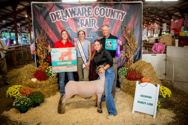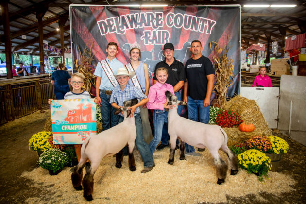 GRAND CHAMPION: Aubrey Altizer | Bid: $1,843.20 | Weight: 152 lbs | Buyer: Fox Swim Solutions; RESERVE CHAMPION: Ella Altizer | Bid: $1,392 | Weight: 120 lbs | Buyer: Jeff Benton; GRAND CHAMPION PEN OF 2 LAMBS: Trenton Day | Bid: $2,230.40 | Weight: 278 lbs | Buyers: Pebble Construction and Delaware County Farm Bureau; RESERVE CHAMPION PEN OF 2 LAMBS: Samuel Young | Bid: $1,714.40 | Weight: 259 lbs | Buyer: Performance Auto Delaware