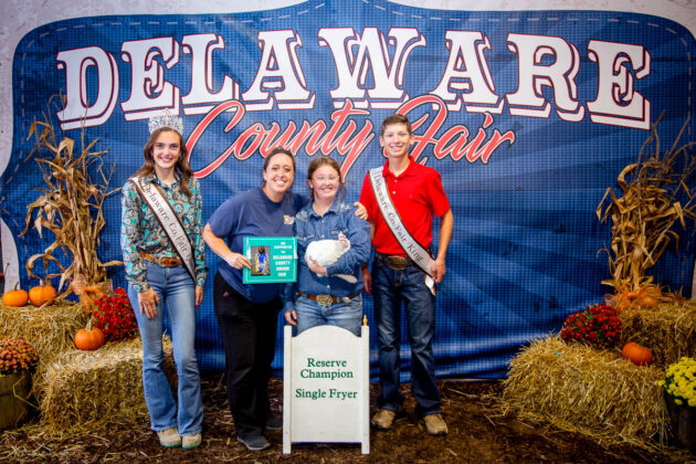 GRAND CHAMPION SINGLE FRYER: Logan Fite | Bid: $700 | Weight: 5.38 lbs | Buyer: Fidelity Federal Savings and Loan; RESERVE CHAMPION SINGLE FRYER: Megan Carey | Bid: $850 | Weight: 3 lbs | Buyer: Snappy’s Auto; GRAND CHAMPION PEN OF 2: Brodie Wheeler | Bid: $1,050 | Weight: 17.38 lbs | Buyer: Mead & Associates, Table Rock Construction Inc. and Middlefield Bank; RESERVE CHAMPION PEN OF 2: Addison Mack | Bid: $900 | Weight: 17.63 lbs | Buyer: Delaware County Fair Directors; GRAND CHAMPION PEN OF 3: Austynn Fite | Bid: $1,300 | Weight: 16.13 lbs | Buyer: Kissel Amusement Co.; RESERVE CHAMPION PEN OF 3: Grace Scharf | Bid: $850 | Weight: 15.32 lbs | Buyer: Performance Auto Delaware