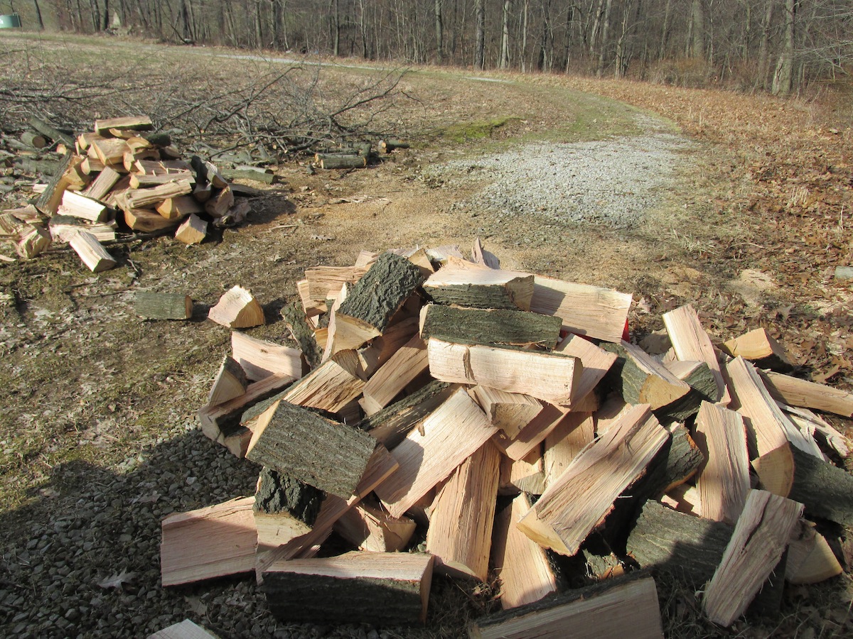 Firewood that has recently been cut and split, and is still green.