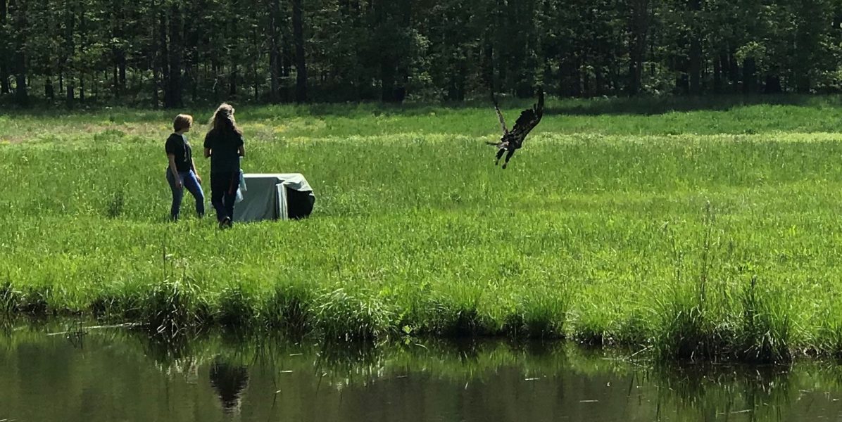 After 49 weeks of care and treatment, Tamarack Center volunteer Riley Walsh, Holmgren and Land Management Group Supervisor Deal released the yearling female eagle near Pymatuning Reservoir.