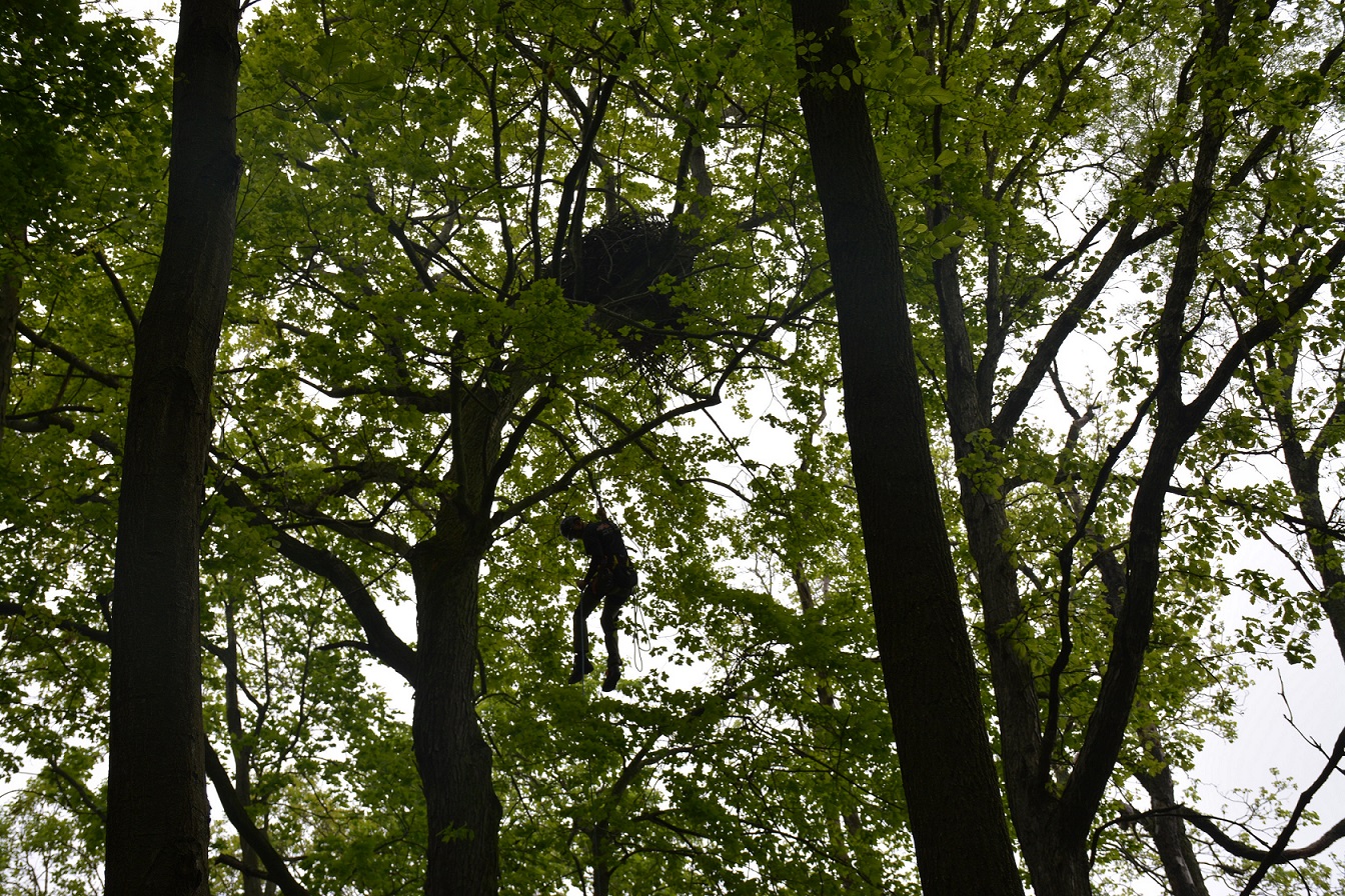 Hoppe had scouted the new nest and determined that the two eaglets within it were about the same age as the eaglet they hoped to introduce, which would allow them to compete on even footing for food in the nest.