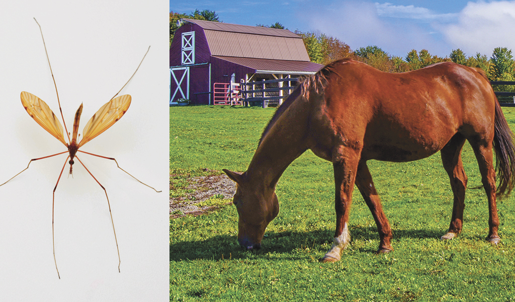 The virus responsible for EEE is transmitted to horses by mosquitoes and attacks the animal’s central nervous system. In horses, onset is abrupt and usually fatal.