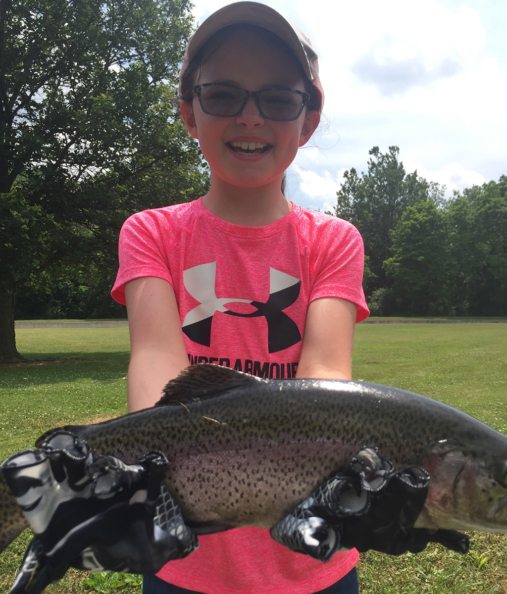 Ellie Delvaux caught an 18-inch rainbow trout at Castalia Fish Hatchery on July 10, 2020.