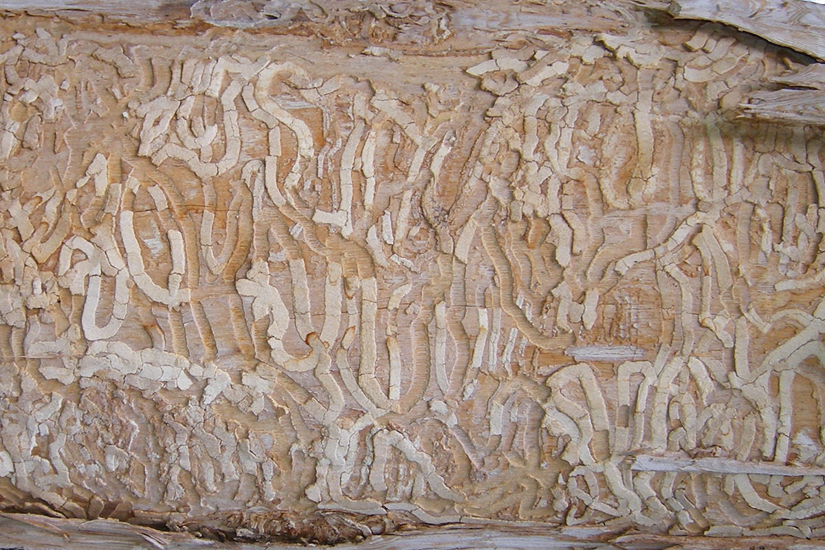 The insects create characteristic serpentine galleries that cut this vascular system, starving the tree. Eventually mature adults exit the tree to start the process again.