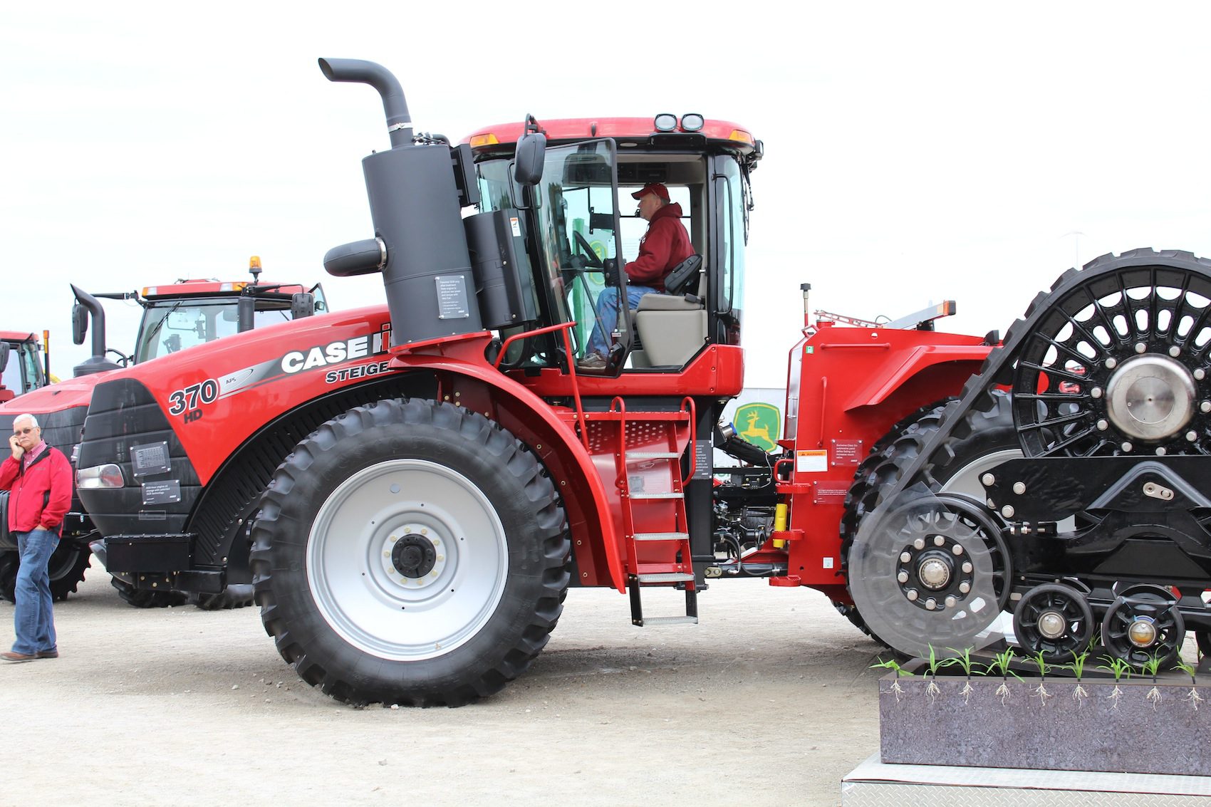 Over at the Case IH display, equipment specialists worked from a newly built showroom — flanked on the perimeter by new tractors, planting equipment and two new Case combines.