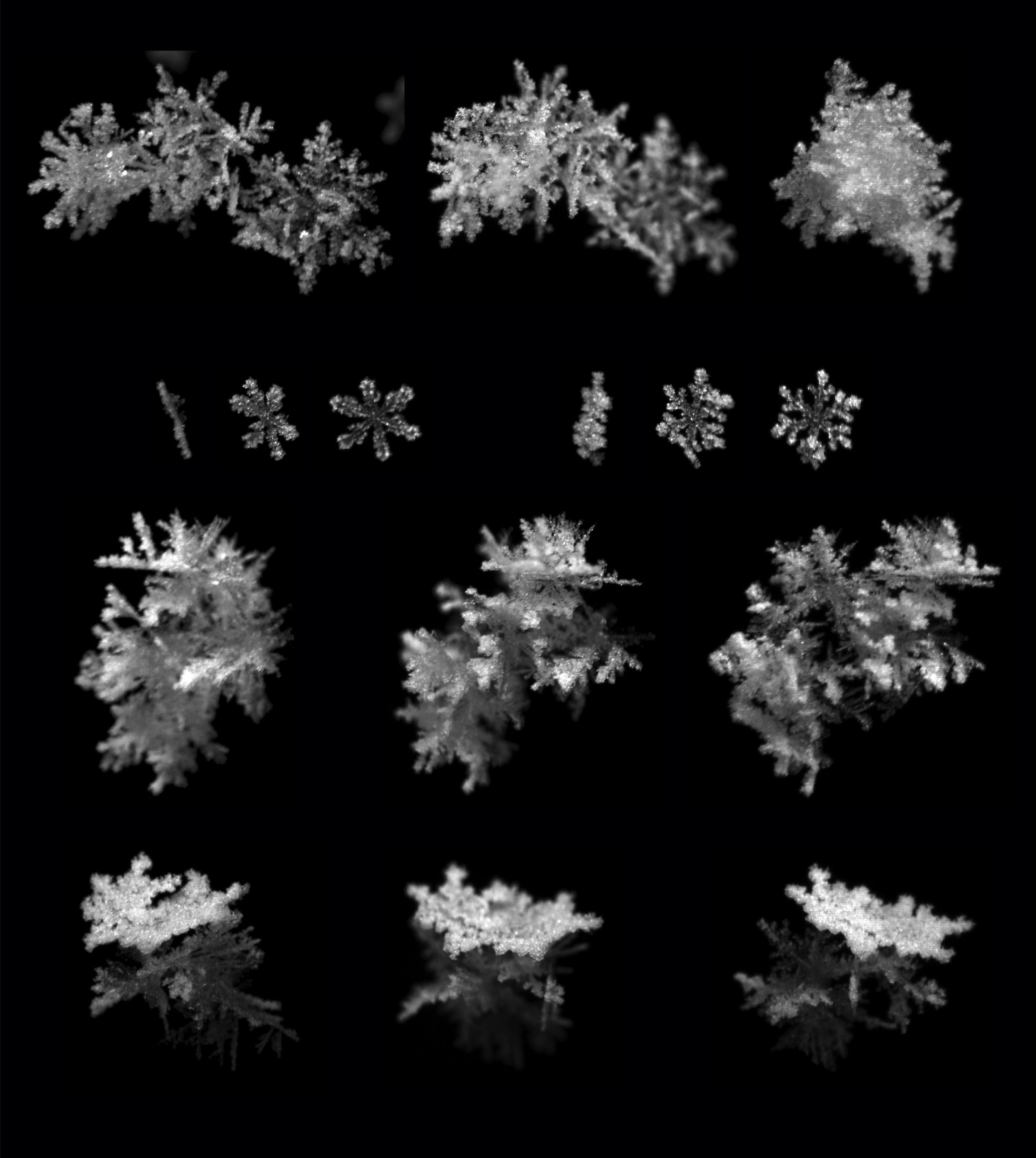 Snowflakes in traditional photographs “tend to be of a particular type that conveniently lies flat on a microscope slide, where a camera can get them perfectly in focus, and the photographer can take the time to get the light exactly right,” he says.