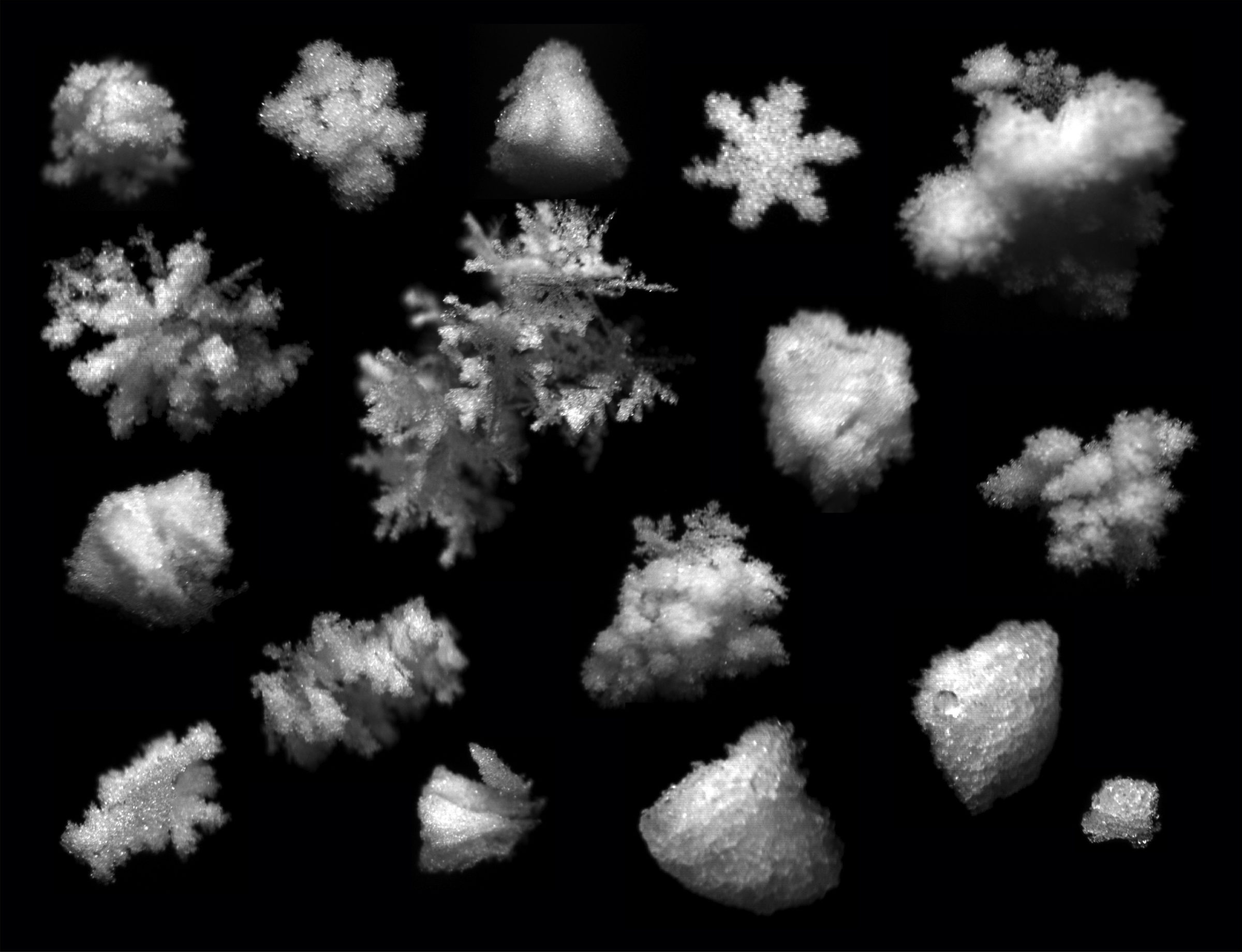 Garrett says today’s weather forecasts still use snowflake research done meticulously by hand in the 1970s in the Pacific Northwest’s Cascade Range. Snowflake fall speed was measured, and the flakes then were collected on plastic wrap, photographed, and melted to determine their mass.