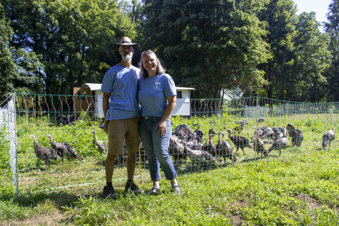 They began with commercial broad-breasted turkeys, the Norman Rockwell kind that adorn most Thanksgiving tables. But it didn’t take long before they realized those birds weren’t a good fit for their farm.