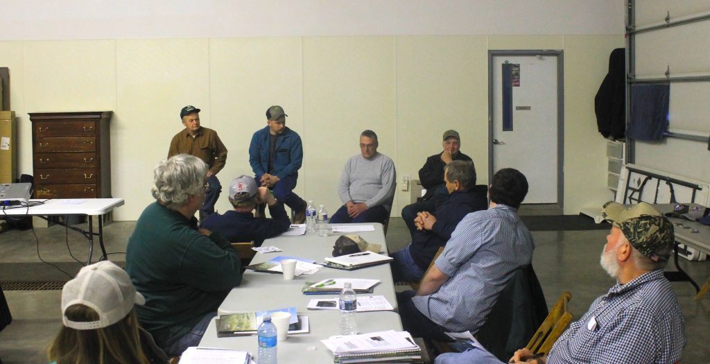 Farmers Bill Cannon, Mercer County; Ryan Graham, Butler County; Chris Pilgram, Mercer County; and Bob Buhl, Erie County, discuss their experiences with cover crops during the farmers’ panel April 11. It was hosted by Mercer County Extension and Natural Resources Conservation Service at Pilgram Farms, Fredonia, Pennsylvania. (Katy Mumaw photo)