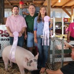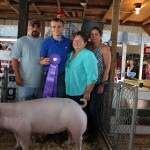 Noah Gainey’s 271-pound grand champion hog sold to Kiko Realtors & Auctioneers, Stevens Concrete and Bill Kiko’s Lawn and Landscaping for a record $25 a pound. Pictured from left are Bill Kiko, Noah Gainey, Pat Kiko, and Colleen Stevens.