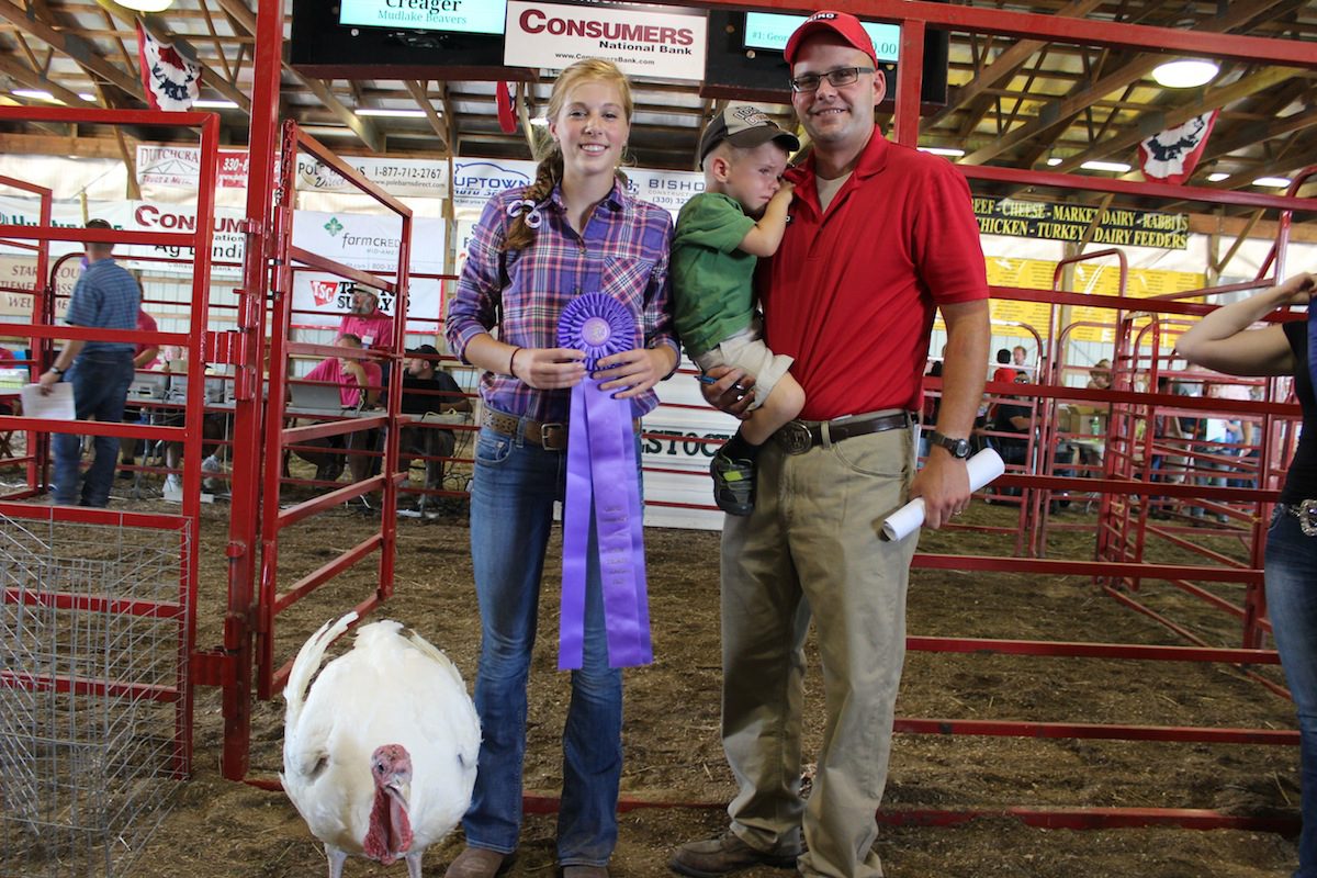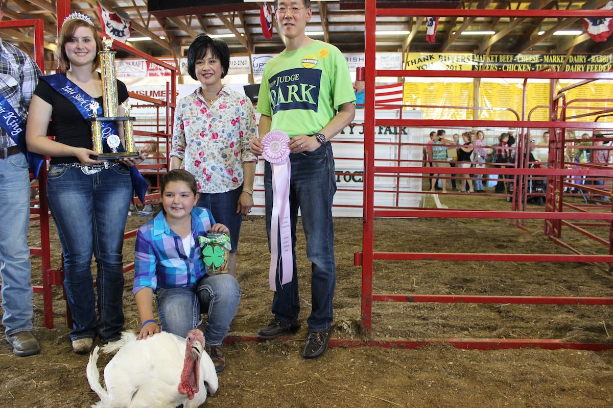 Jim and Sue Kiko bought Georgia Kiko’s grand champion turkey for $1,100. Pictured with Georgia Kiko are Matt and Kiptin Kiko.