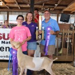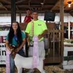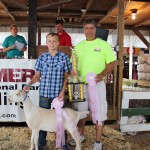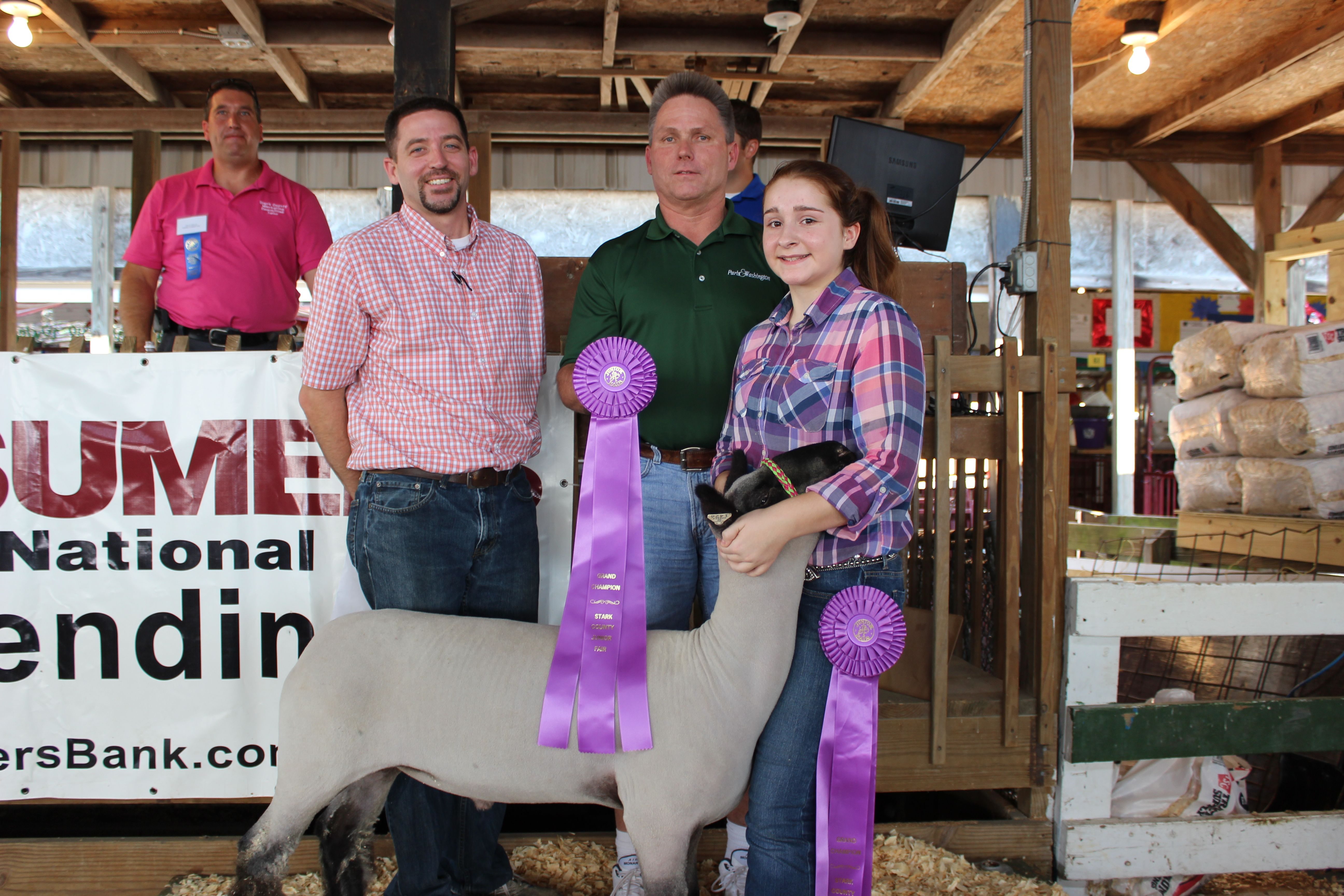 Farmers Exchange bought Samantha Starcher’s 85-pound grand champion dairy market wether for $6 a pound. Pictured with Samantha Starcher is Brian Cairns and Jill Sterling of Farmers Exchange.