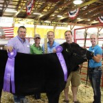 Grand champion exhibitor Lindsey Pugh sold her $1,343-pound market beef steer for a record-breaking bid of $20 per pound to Beaver Excavating Co., R.G. Smith Co., and Eslich Wrecking Company. Pictured with Lindsey Pugh are Richard Eslich, Sr., Anna Pugh, Dick Nicely, and John Eslich.