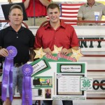Matt Piechuta’s grand champion chicken pen went to Hartville Kitchen for a bid of $1,500. Pictured with Matt Piechuta is Hartville Kitchen representative Vernon Sommers.