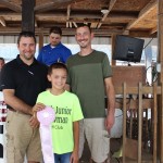 Ryan Ehlers’s reserve champion lamb carcass fetched a $10 per pound bid from buyers Miller & Company, Biery Cheese, Beaver Excavating Co., and Johannings Inc. Pictured with Ryan Ehlers is Curtis Bates of Johannings, Inc. and Steve Kiko representing the other buyers.