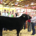 Sara Klem’s 1,278-pound reserve champion market beef steer sold to Paris and Washington Insurance, Enviroscapes, Biery Cheese, Kreighbaum-Sanders FH, Kiko Meats, Umbarger Feeds – Cliff Linder, Klehm Cattle Company, and George and Becky Kiko for $12.50 a pound. Pictured with Sara Klem are Cliff Linder, Victoria Mauer, Ben Biery, Kelly Palmer, Anna Pugh, Todd Pugh, Darrell Klehm, and Ron Kiko.