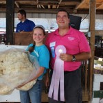 Sarah Shilling recieved a bid of $200 from Wells Family Farm for her reserve champion wool. Pictured with Sarah Shilling is Dale Wells.