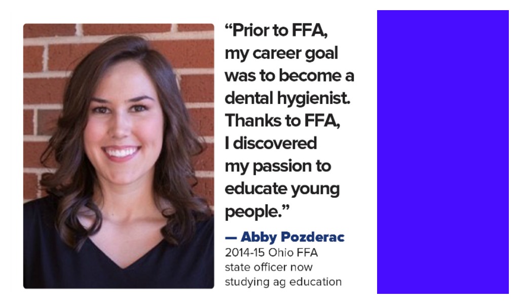 (Editor’s note: This week is the Ohio FFA state convention. We reached out to two Knox County FFA’ers who have stretched their potential through FFA, serving as state officers, to hear their FFA reflections. Here’s the first exclusive post, by 2014-15 state officer Abby Pozderac, of Fredericktown, Ohio, and you can read 2016-17 state officer Ryan Matthews’ piece, too.)