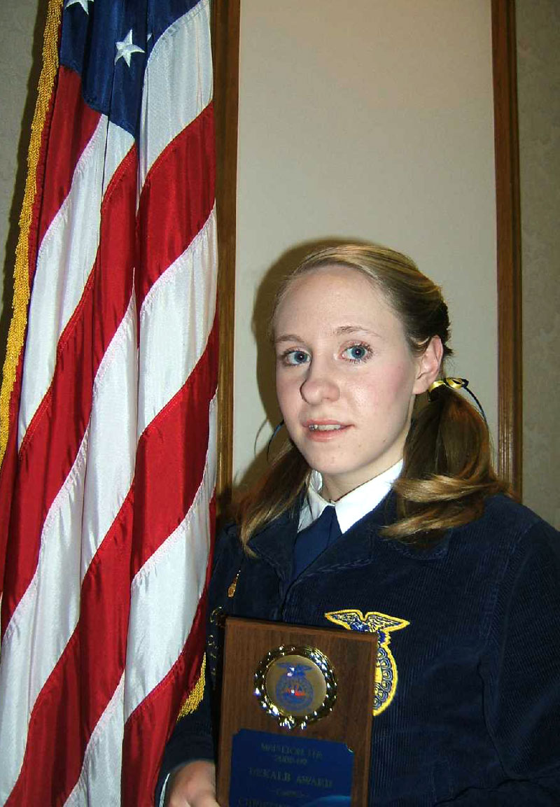 The DEKALB Agricultural Accomplishment Award was presented to senior Christine Ritchie in honor of her achievement in her FFA experience.