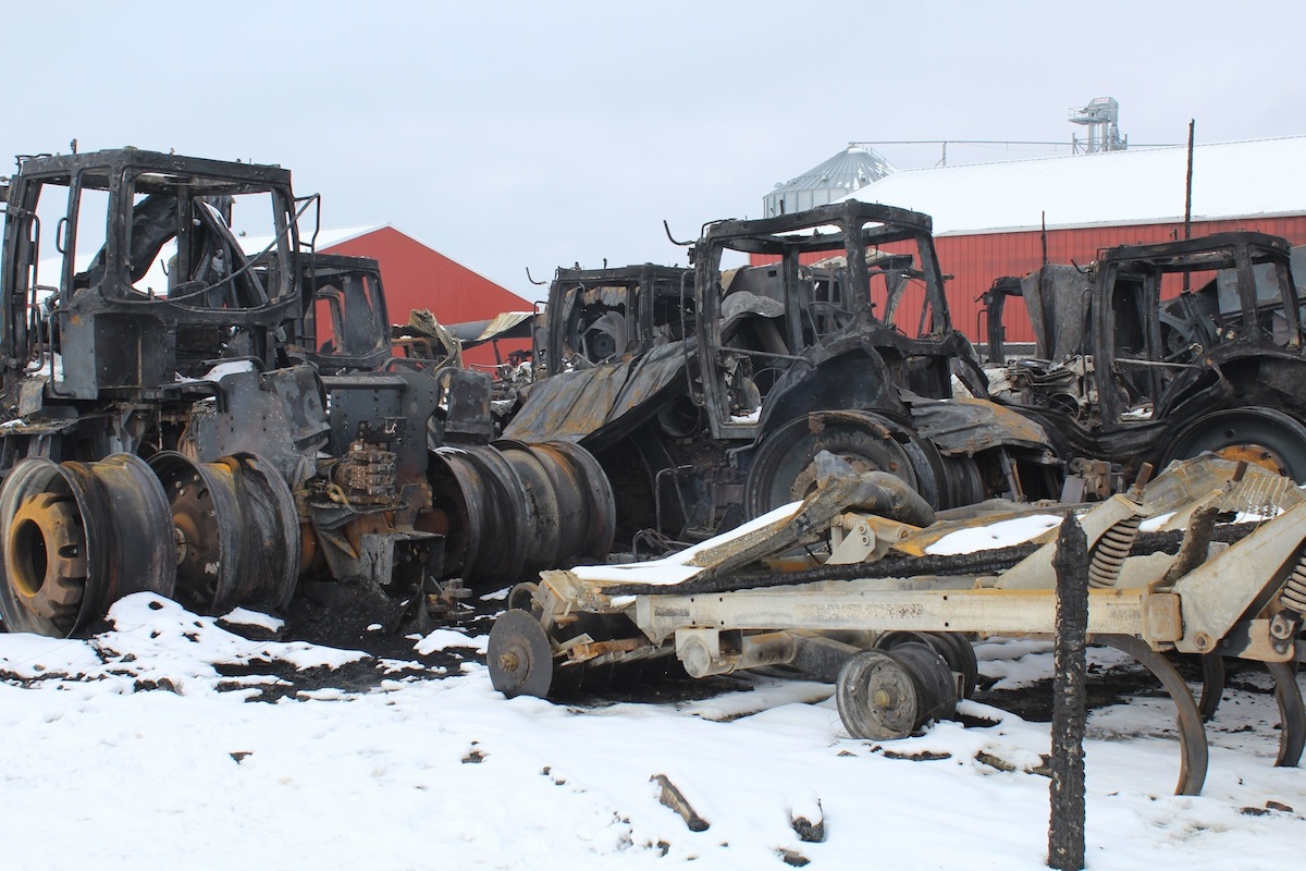Everything in the shed was destroyed — including three newer combines, a dozen tractors, planters, sprayers and grain heads. He estimates the damage at upward of $7.5 million.