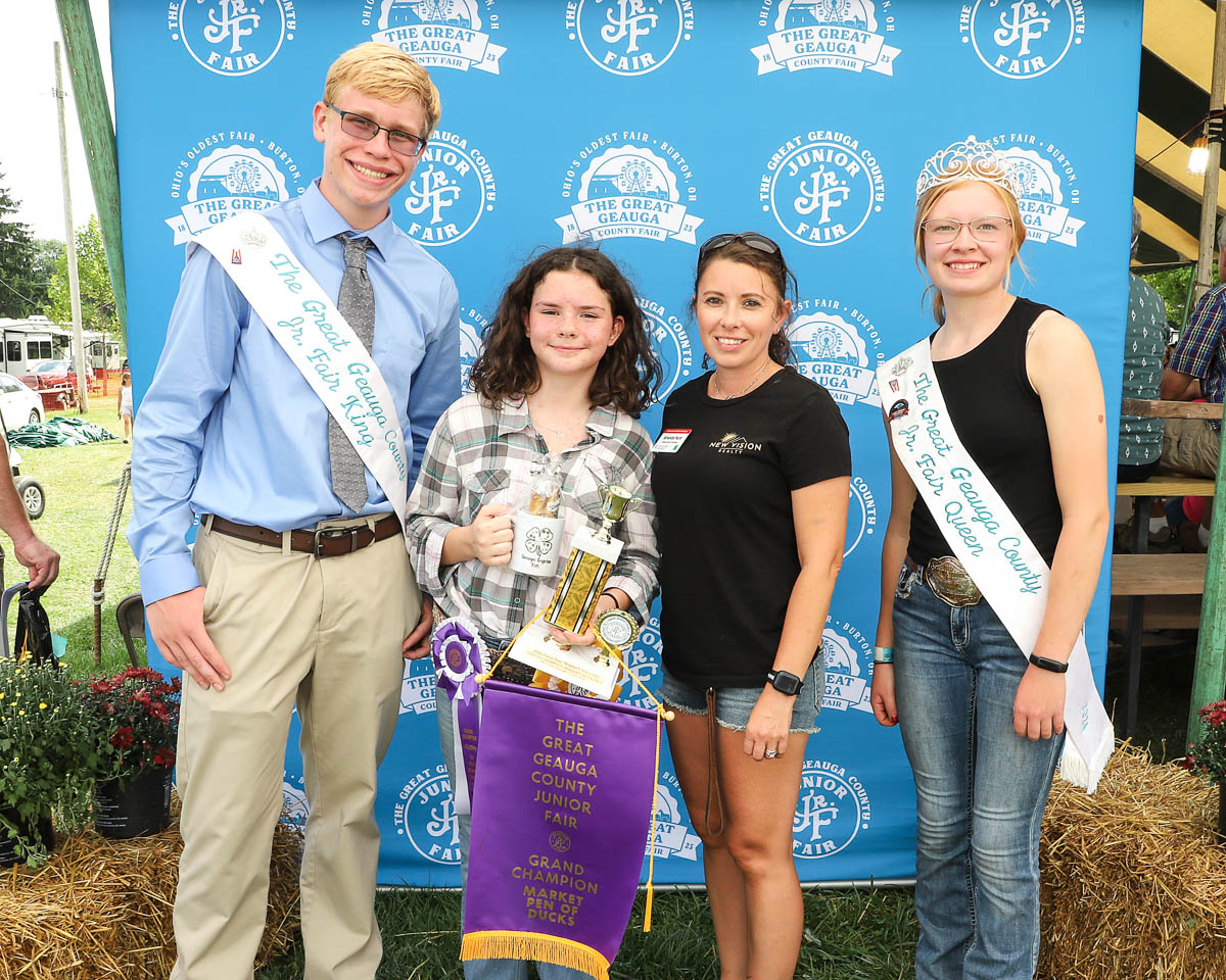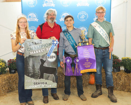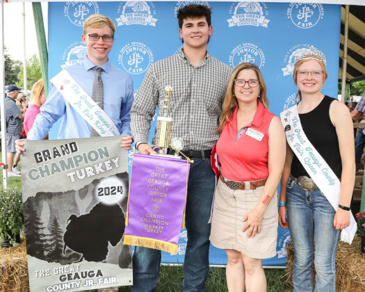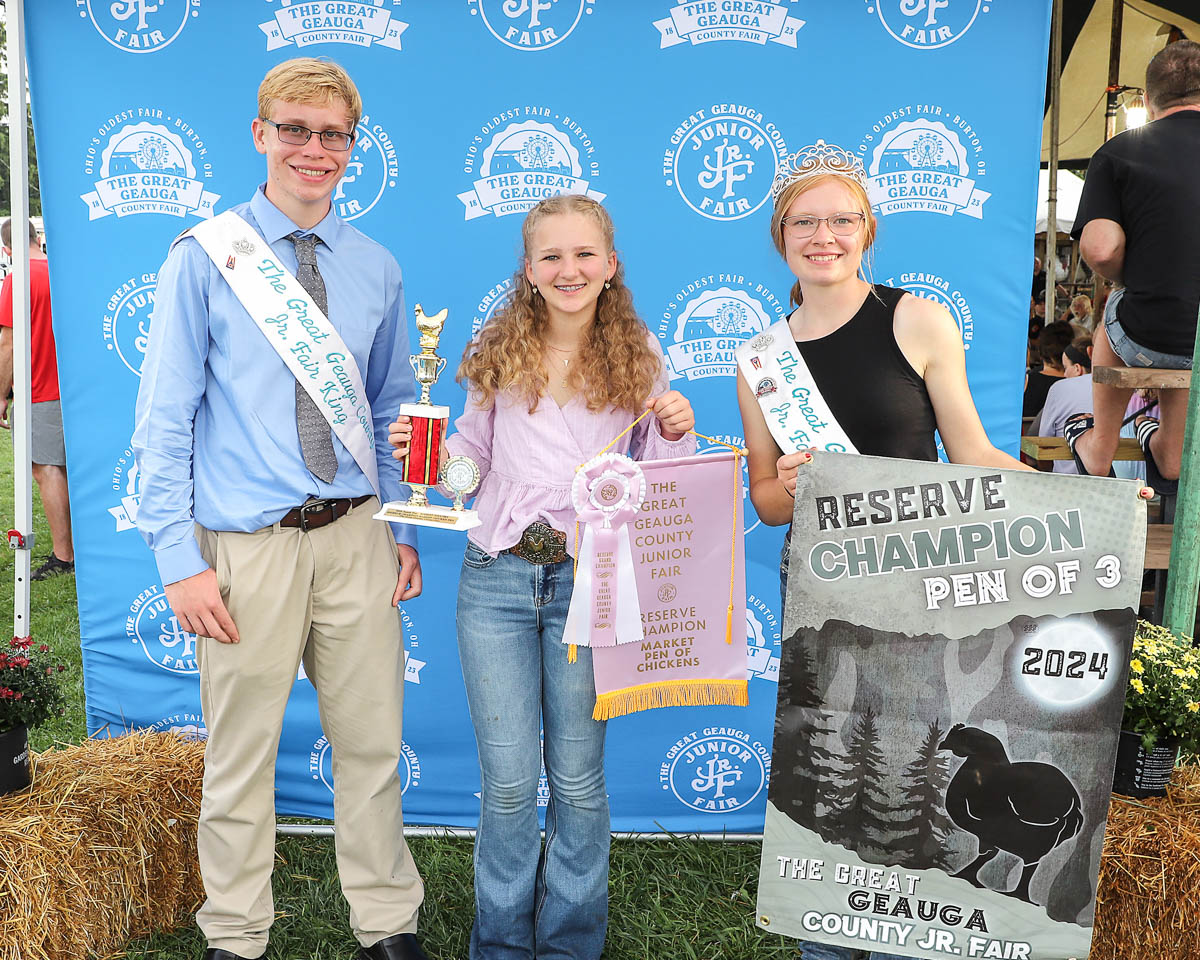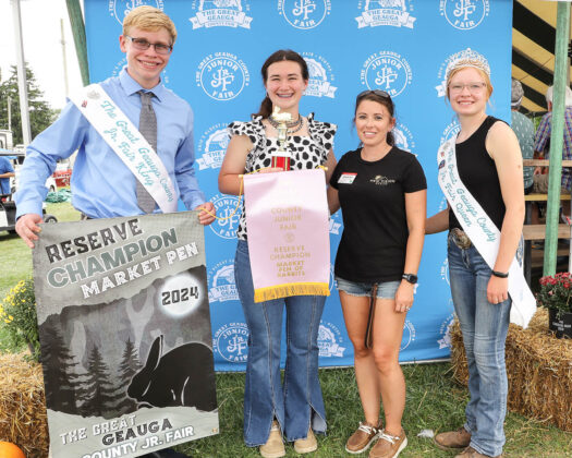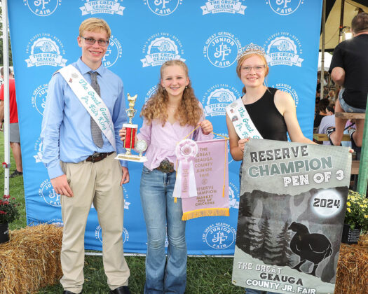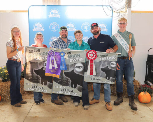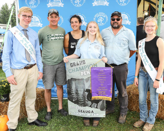 GRAND CHAMPION: Max Soltis | Bid: $3,800 |Weight: 36 lbs | Buyer: Geauga Feed & Grain; RESERVE CHAMPION: Megan Csantos | Bid: $1,400 | Weight: 35.2 lbs | Buyer: Mack Plumbing