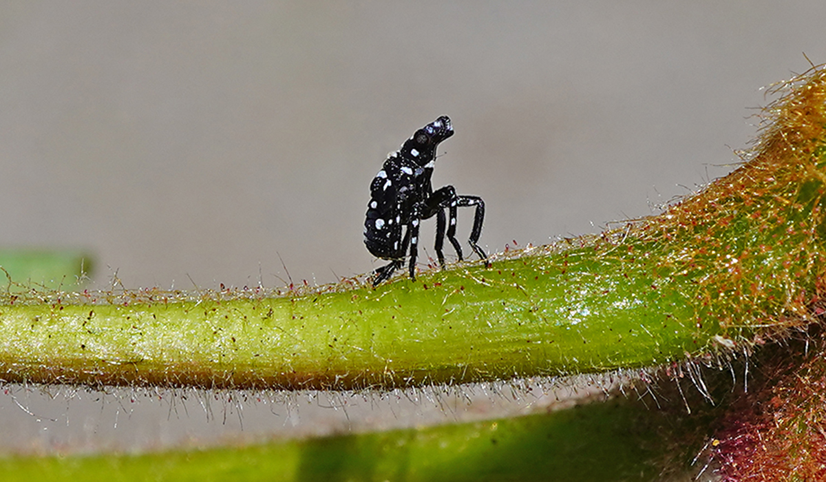 SLF nymphs have a pretty wide host range, and are incapable of flying, but are strong jumpers or hoppers as their species is described in the name — planthoppers. First, second, and third instar nymphs are black with white markings. The fourth instar is red with black and white markings.