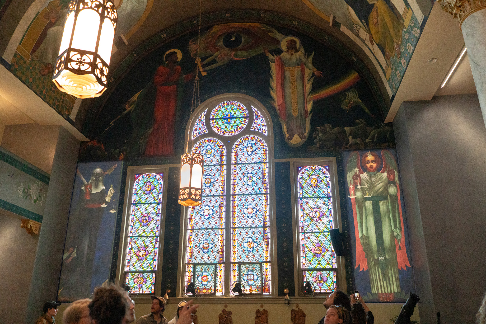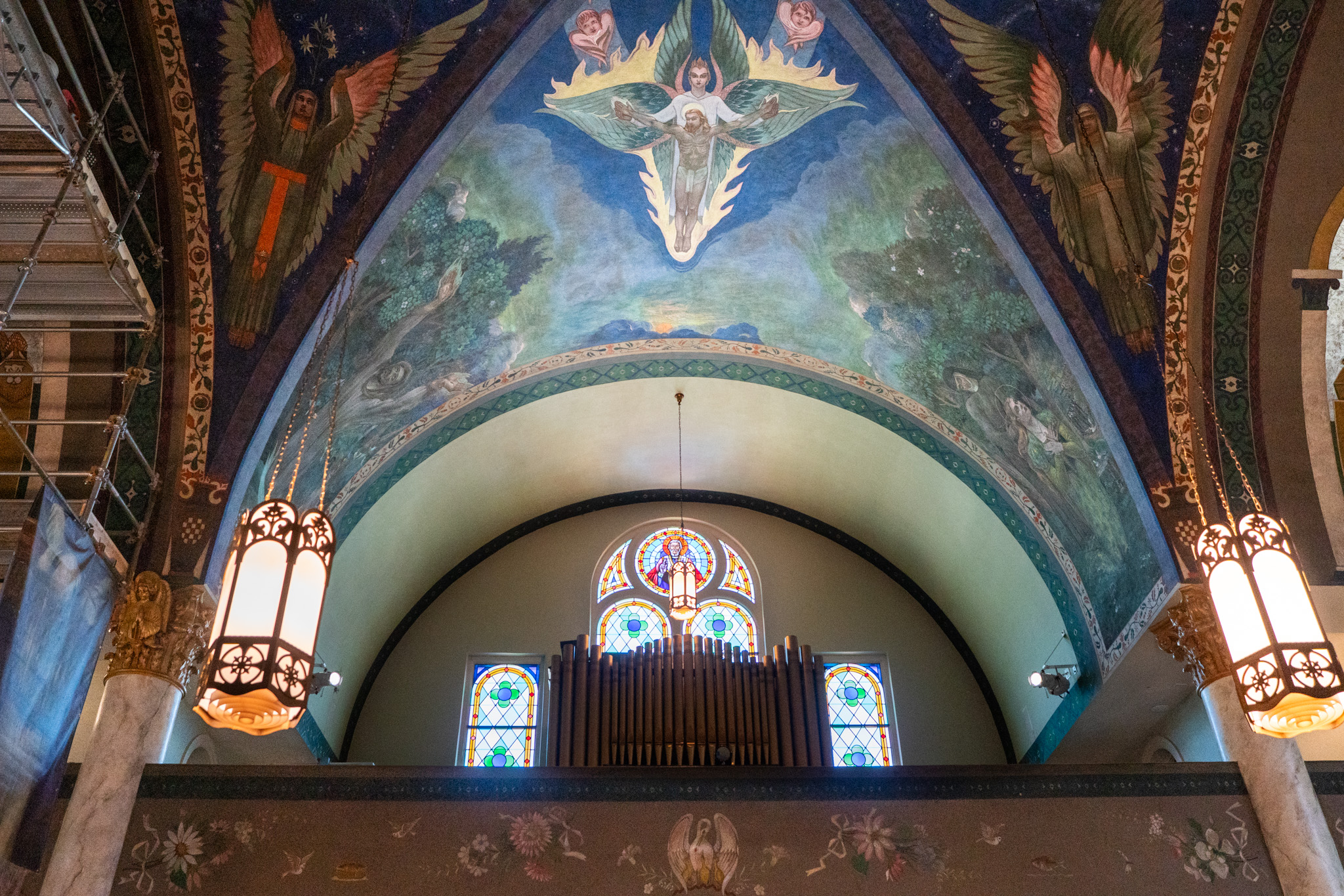 “The damage to the murals was continuing, so we wanted to address it as fast as possible,” Doering said, about applying for the grant. In the past three years, the funding has allowed the organization to complete some of its most tricky murals, including “Transcendent Vision,” on the ceiling of the church and sections on the high walls.