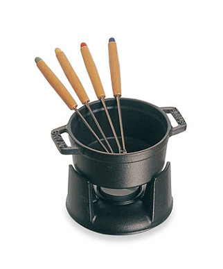 Made of cast iron, this fondue set is perfect for a small gathering of friends and family. The set sells for $89.99 and comes with four forks.