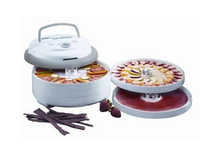 With an adjustable thermostat, top-mounted fan for the more effective drying and five drying trays, the Snackmaster Pro 600 watt food dehydrator works well for drying jerky, fruit and vegetables. Priced at $69.99, this dehydrator comes with a one-year limited warranty.