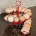 Fresh eggs can be arranged from oldest to newest on this $25 egg skelter. It’s the perfect size for the countertop, and great for those who keep their eggs at room temperature.