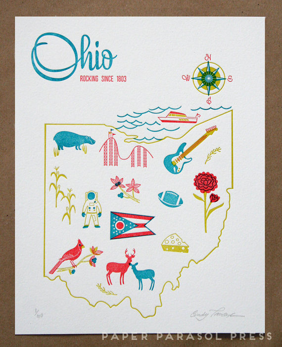Each letterpress print from Paper Parasol Press sells for $28.