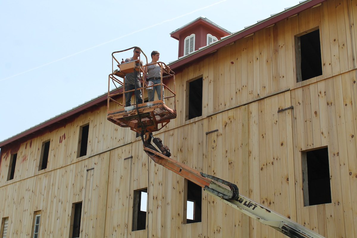 A couple Civil War-era trees were removed from the property and used to make boards for the floor. The barn has all new doors, a standing seam roof and two-three coats of stain.And giving it a little more flare — it has two carefully crafted cupolas on the roof and newly-built louvers in all the windows.