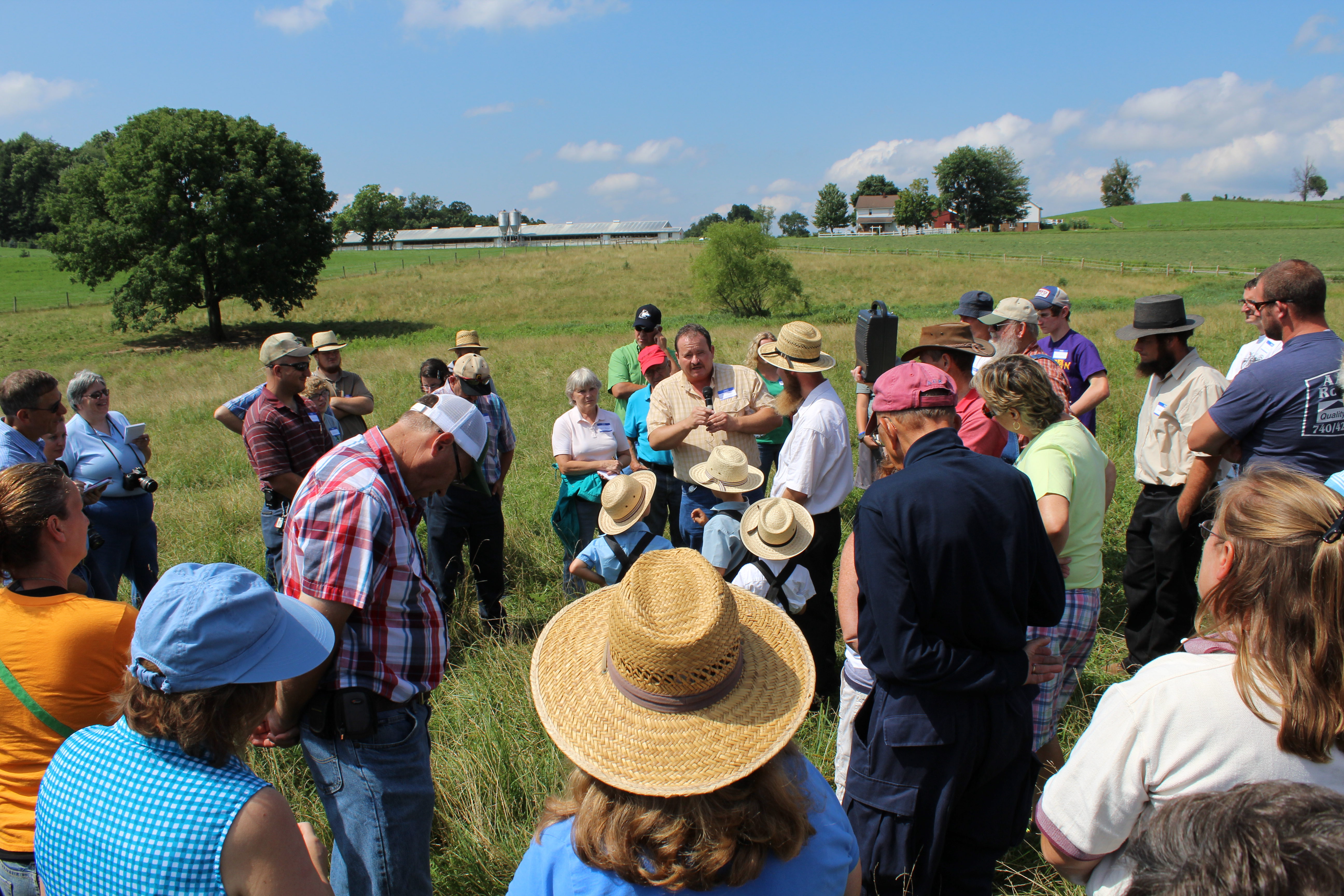 The Dennis Hershberger farm — the second stop on the tour — had an abundance of fescue in the pasture, in addition to orchard grass and some others. Graziers said as a grass, fescue is about as beneficial as it is a challenge. On the beneficial side, it grows well, and especially late in the season.