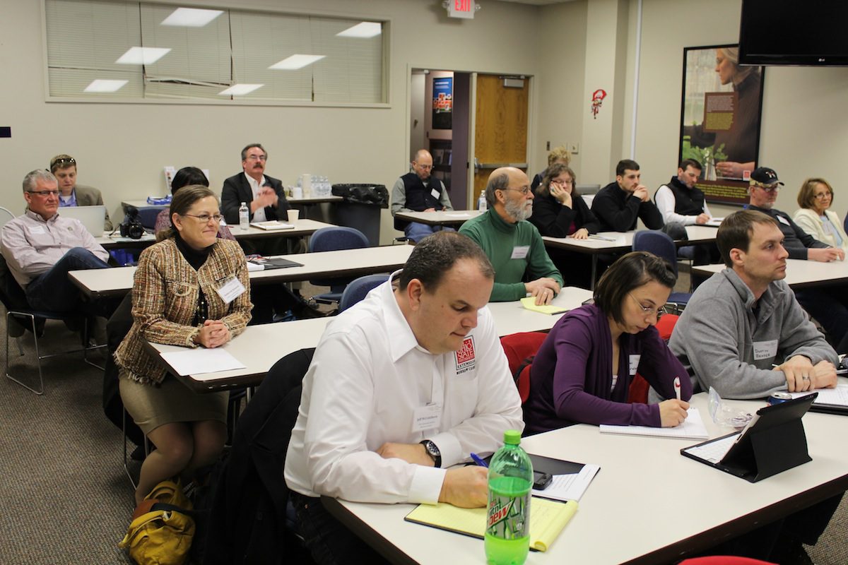 Attendees take notes at the grass-fed co-op meeting.