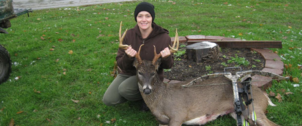 Jayme Ottena shot her first buck of the season with a crossbow. This photo was taken on her Pennsylvania farm.