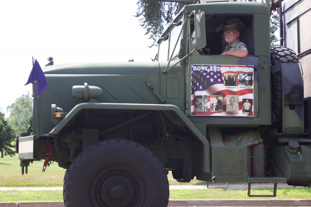 “We honor our veterans and our soldiers every time along here,” said Terry Shelswell, of Holly, Michigan, who is commanding the convoy.