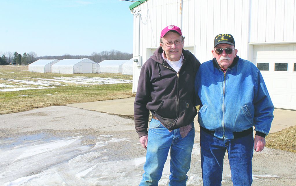 Jake Trethewey (left), and his father, John, operate Maplestar Farm in Geauga County. The Trethewey family specializes in vegetable production, and has made the most of urbanization and the changing northeast Ohio landscape. (Chris Kick photo)