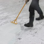 The first order of business was to mark the area of ice to be cut with parallel lines about 16 inches apart with a circular saw on a sled.
